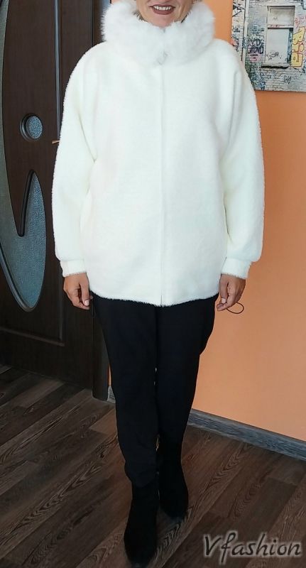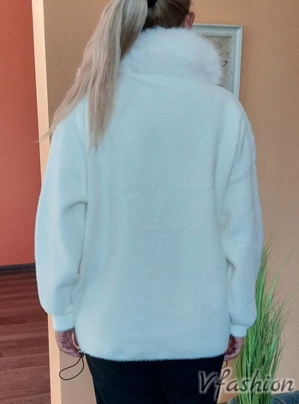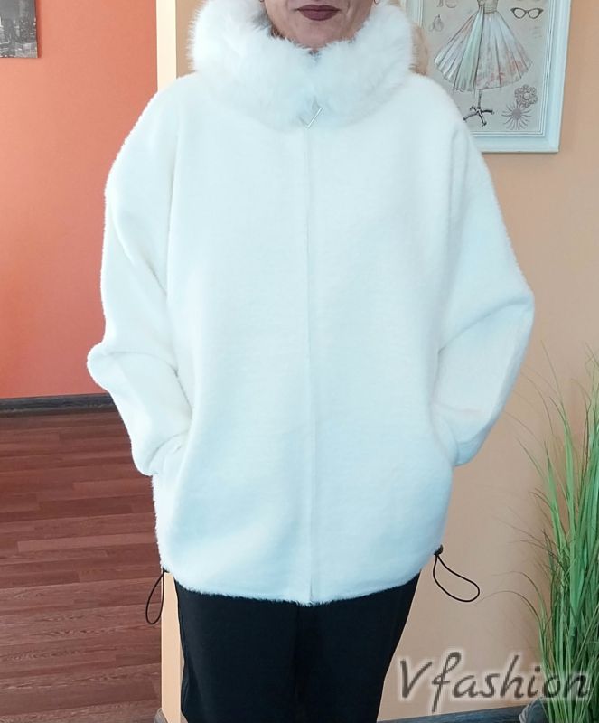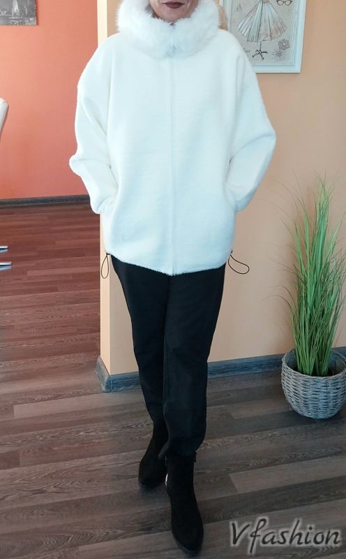 Жилетка с яка с пух - бяла