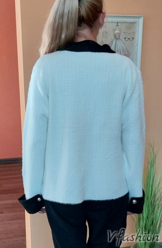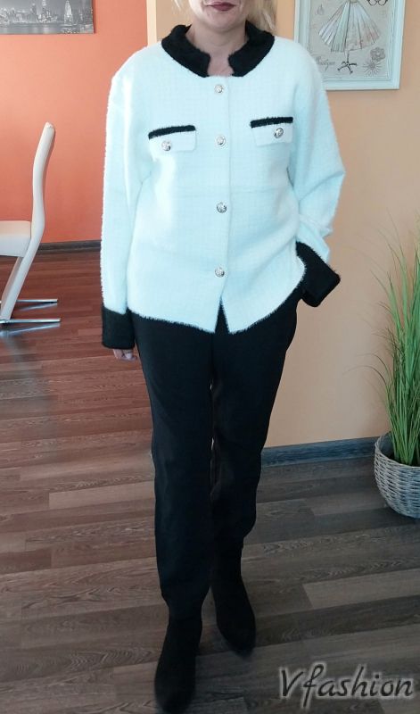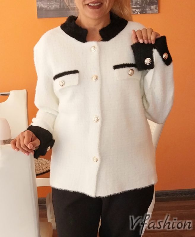 Висококачествено и много елегантно сако от много мека и плътна материя в бяло с черни акценти. Сакото има златисти копчета за акцент.