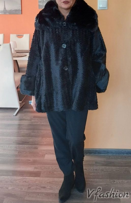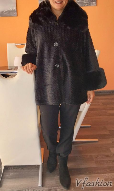 Висококачествено и много елегантно палто от изключително мека материя с пух по яката и ръкавите. Палтото няма подплата и е подходящо за преходните сезони.
