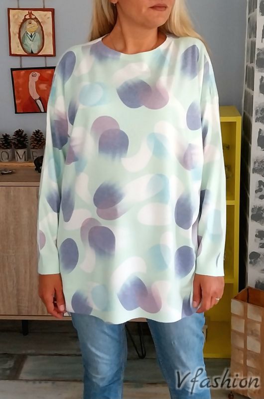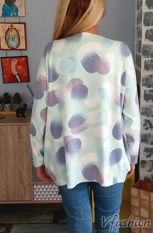 Цветен пуловер от изключително меко, висококачествено плетиво с красив принт.