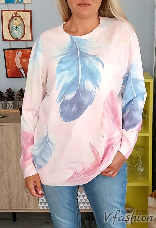 Цветен пуловер от изключително меко, висококачествено плетиво с красив принт.