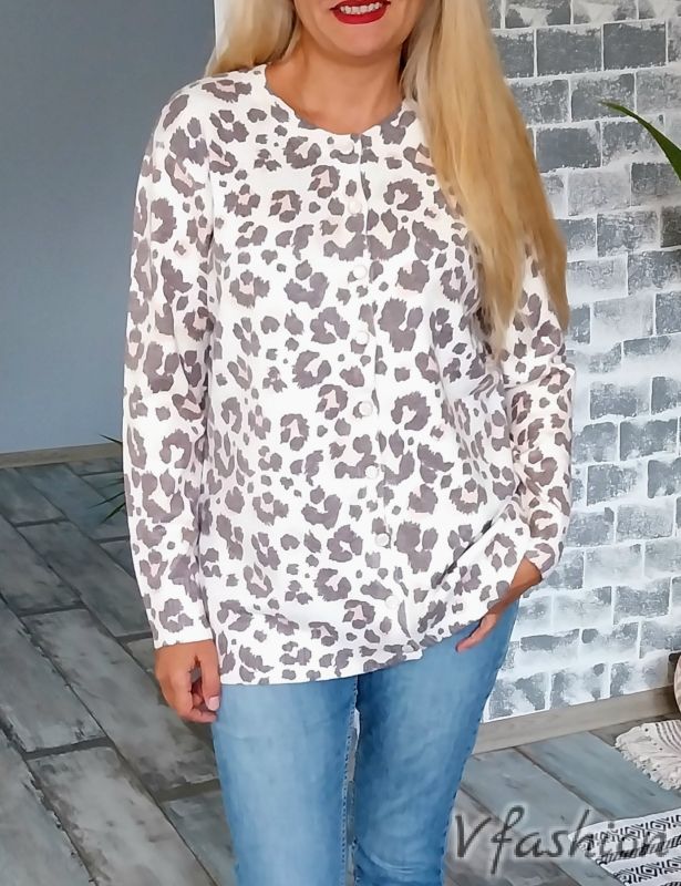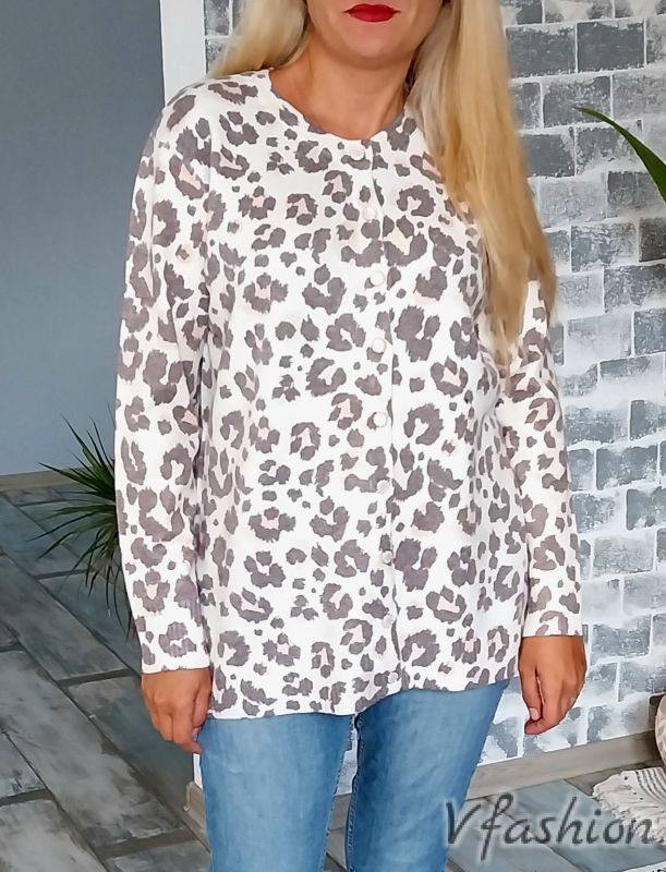 Стилна жилетка с много актуален принт и красиви копчета. Жилетката е от фино и меко плетиво.