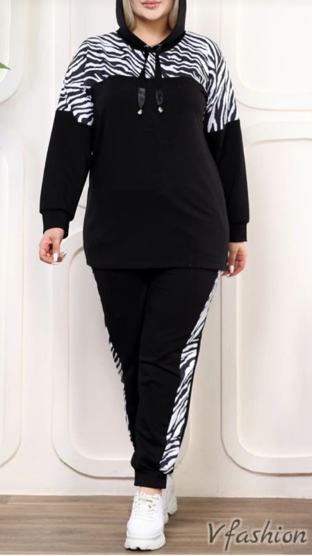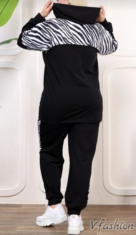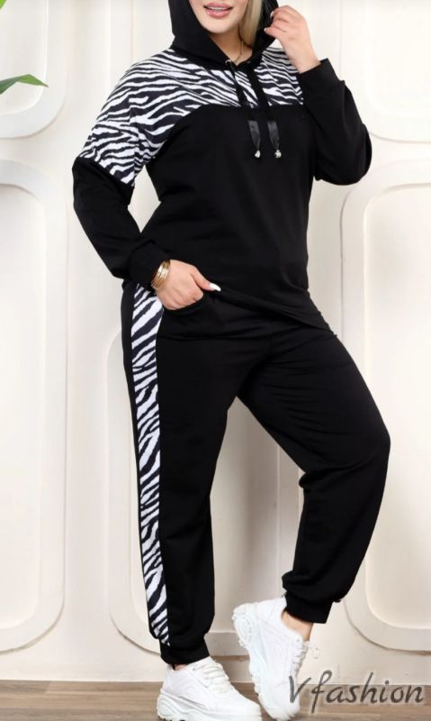 Удобен, спортен комплект от долнище и блуза с качулка. Долнището е на ластик. Комплектът е от качествен, памучен плат.