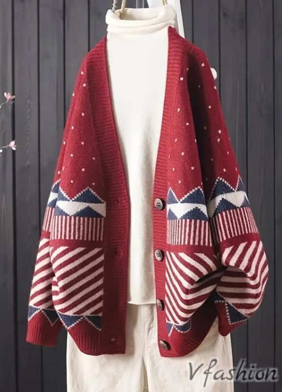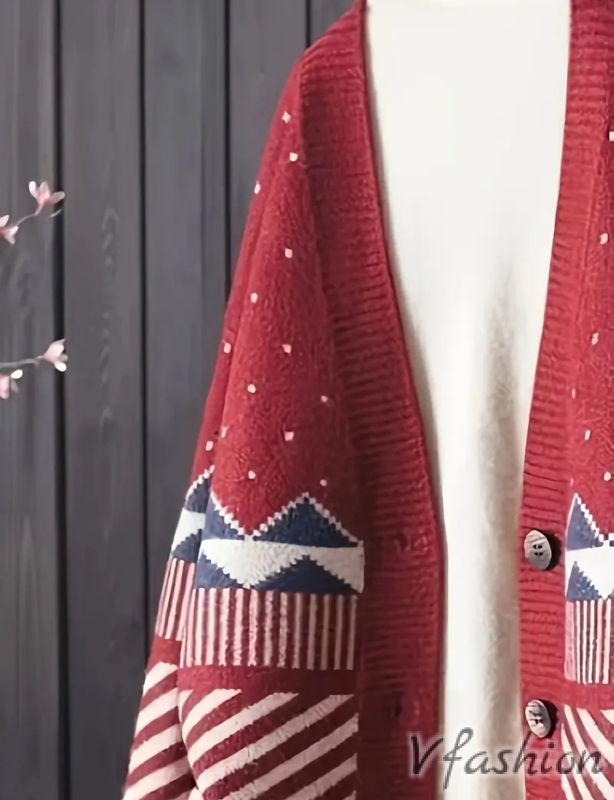 Ежедневна жилетка с актуална, геометрична шарка. Жилетката е от меко плетиво.