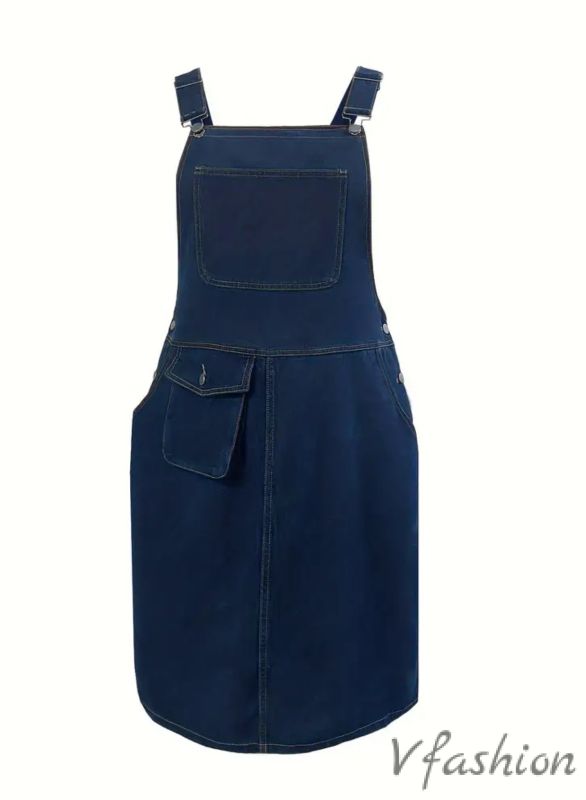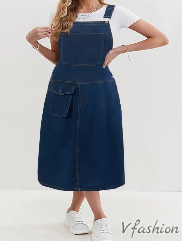 Много актуален сукман от дънков плат с регулируеми презрамки и удобни джобове.