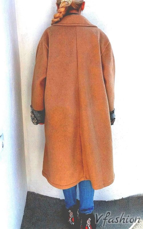 Вълнено палто с красиви акценти - карамел