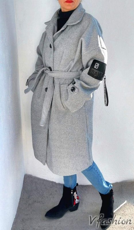 Много актуално и висококачествено палто с удобни джобове и колан. Палтото има хастар и акцент на единия ръкав.