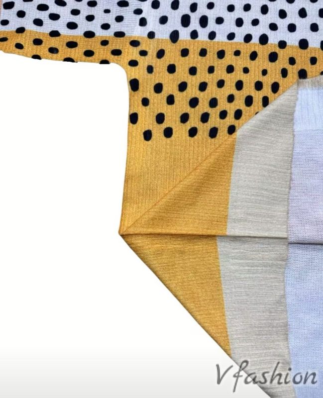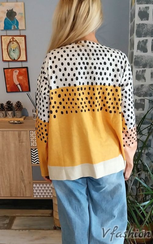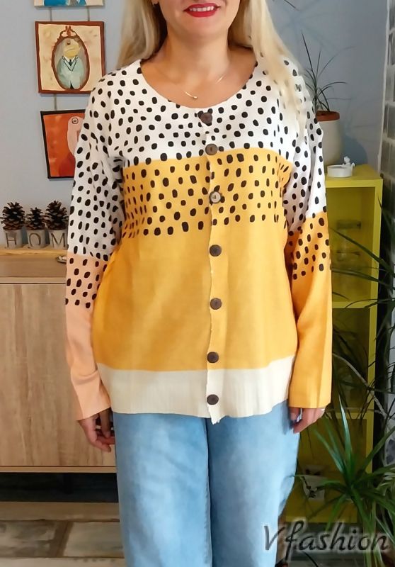 Много актуална жилетка от тънко, фино и качествено плетиво с много красив принт.