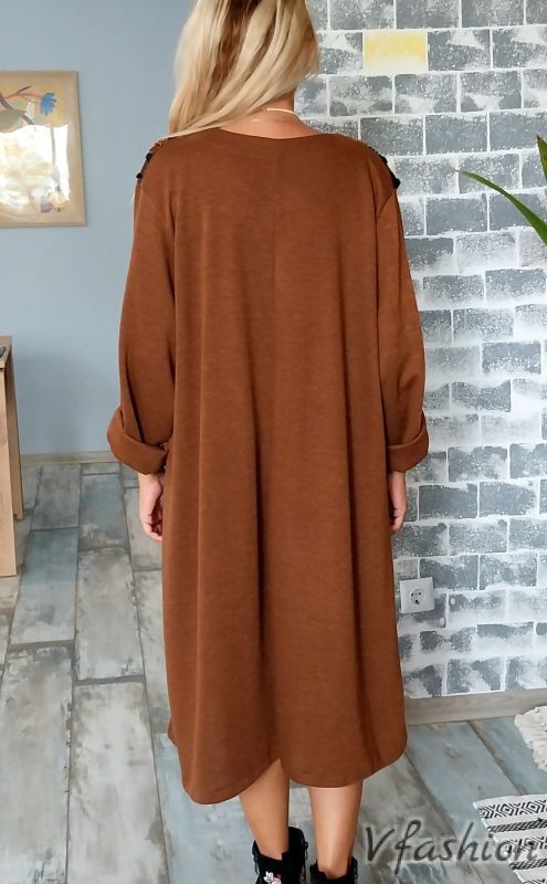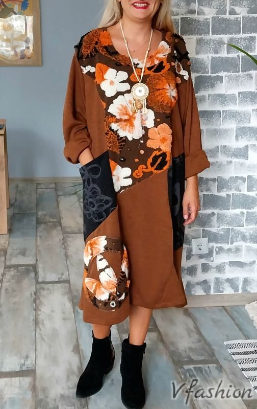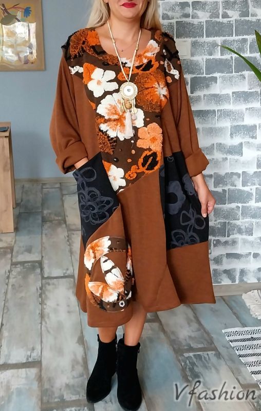 Арт рокля с много красиви, цветни акценти от вълнен плат. Роклята има удобен джоб. Материята е много качествена, плътна и леко еластична.