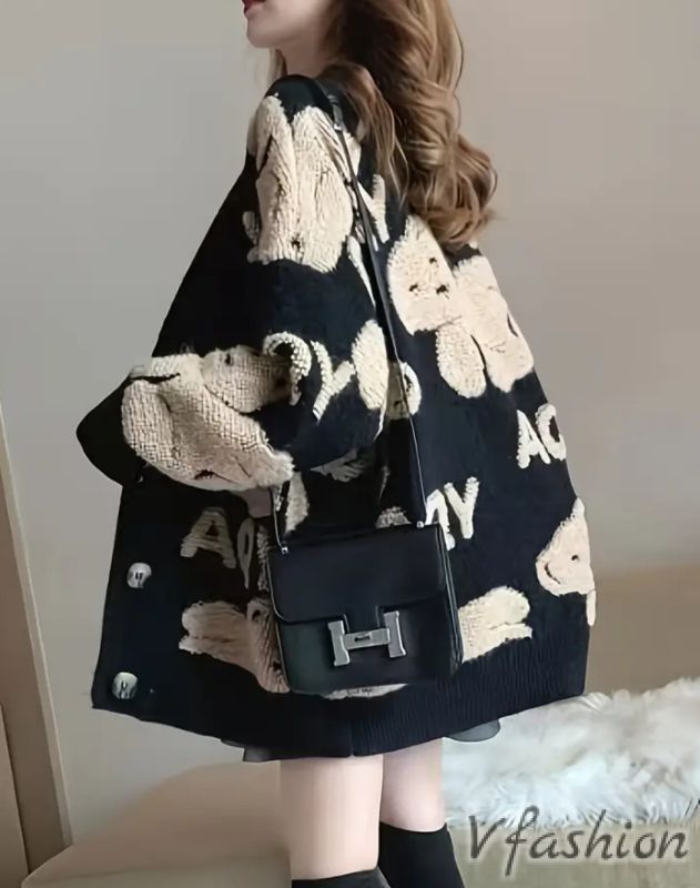 Плътна и красива жилетка с мотиви в бежово. Закопчава се с копчета.