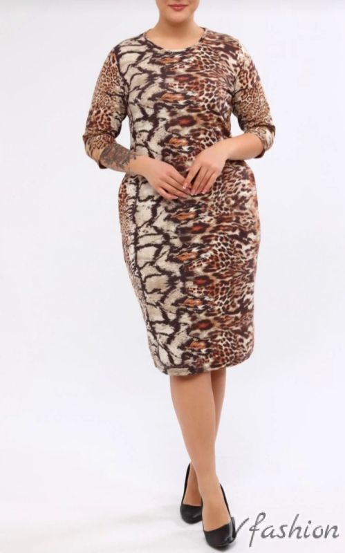 Елегантна рокля по тялото с тигров принт. Роклята е от много приятна материя. Има странични джобове.