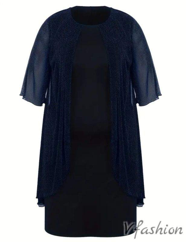 Официална рокля с пришито наметало със сребристи нишки. Материята е леко еластична.