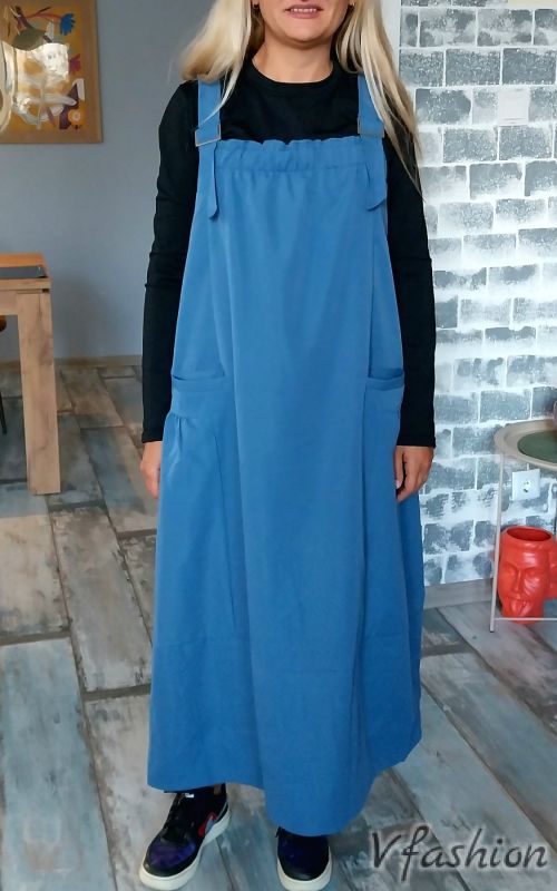 Сукман с джобове - син