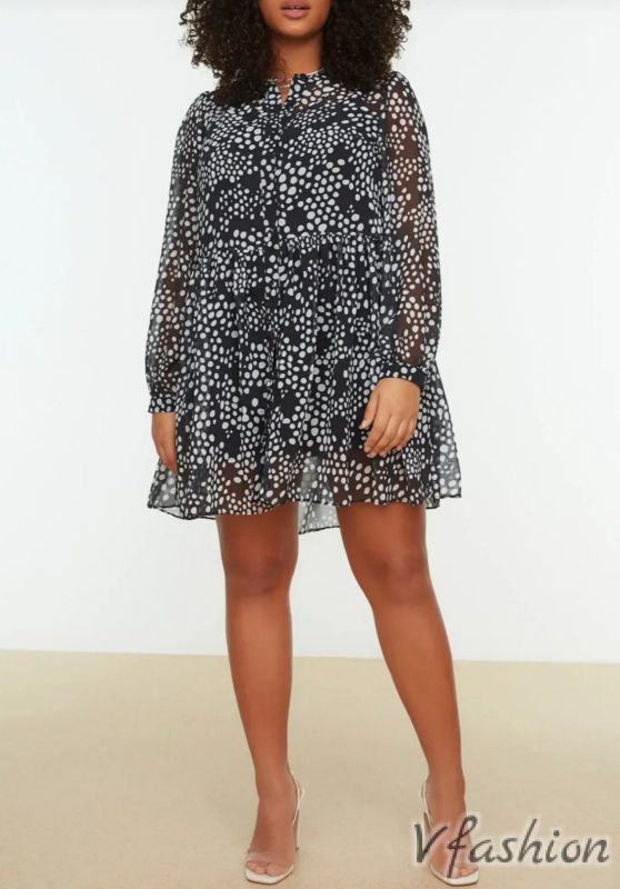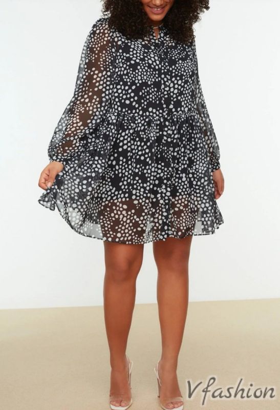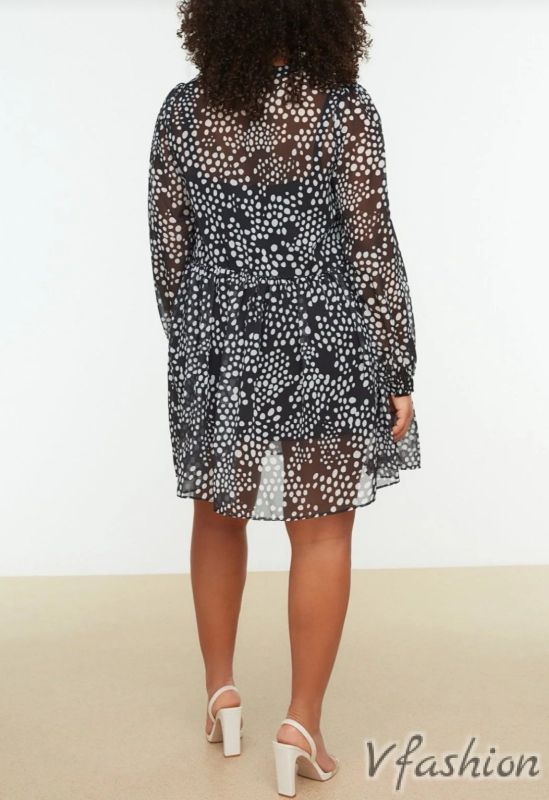 Кокетна рокля от ефирна материя на точки. Подходяща е за различни поводи.