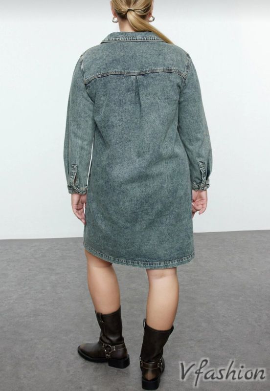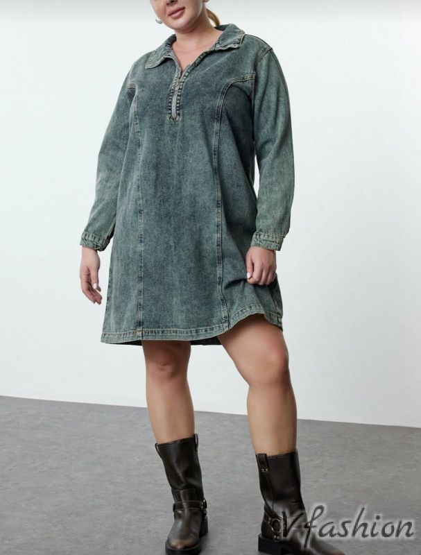 Много актуална, дънкова рокля от качествена материя с цип по цялата дължина.
