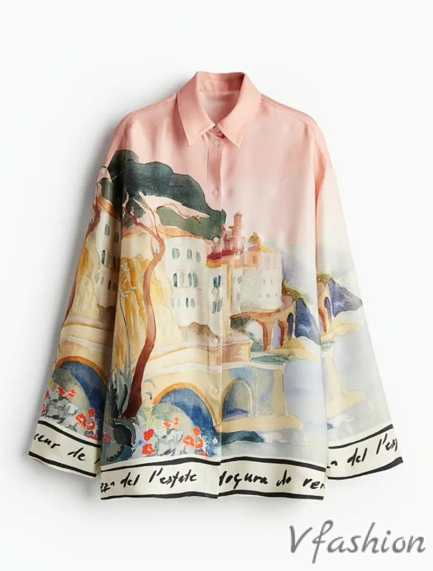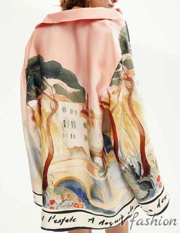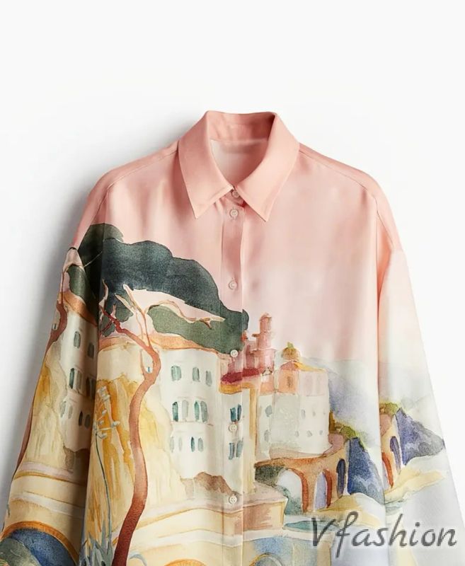 Спортно-елегантна риза с много нежен принт на розов фон.