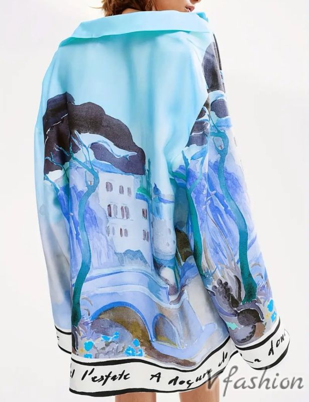 Риза с нежен принт - синя