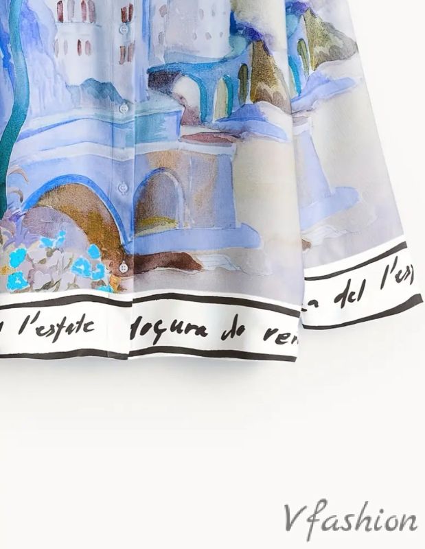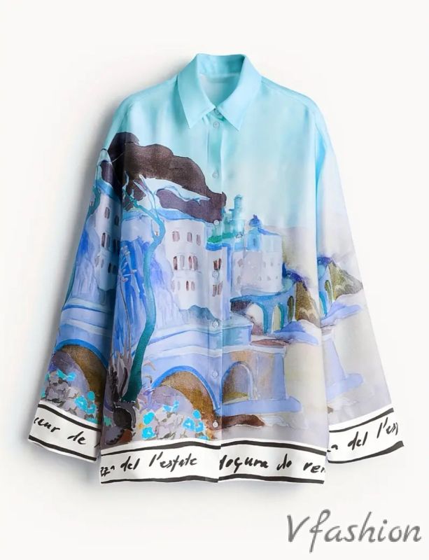 Спортно-елегантна риза с много нежен принт на син фон.
