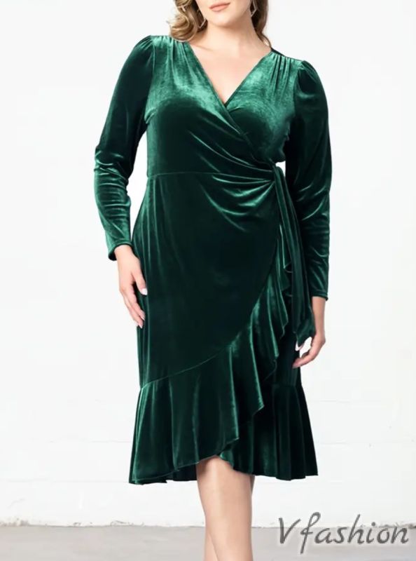 Много елегантна и красива рокля от нежно, фино кадифе с волан.