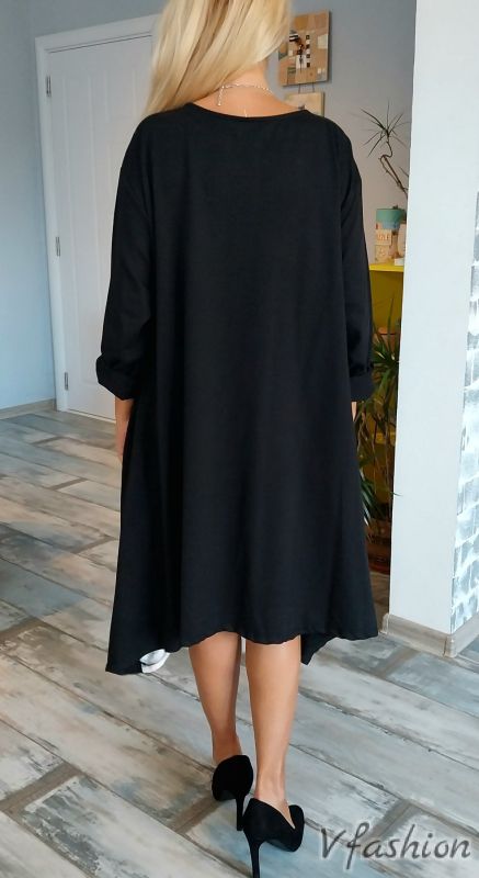 Много актуална, разкроена рокля. В предната част е сатен с красив арт принт и странични джобове. Роклята е подходяща както за ежедневието, така и за специален повод.