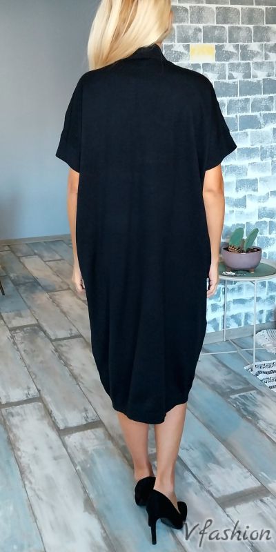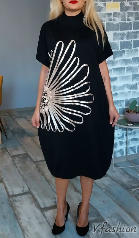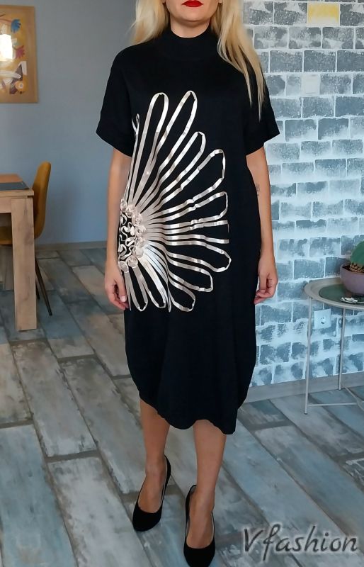 Спортно-елегантна рокля от фино, но плътно плетиво с нашивка голямо цвете.