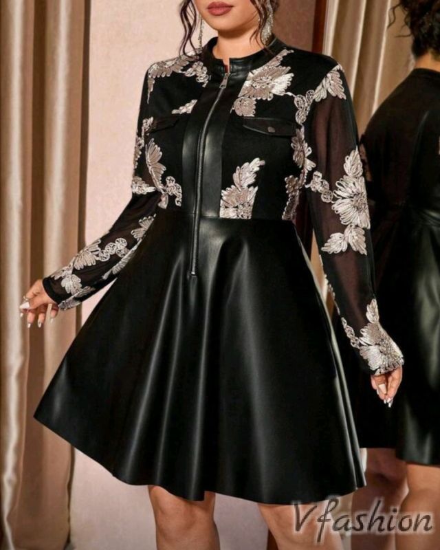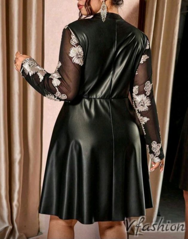 Рокля от еко кожа с бродерии