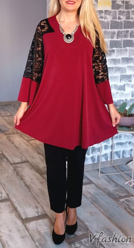 Елегантна, разкроена туника с дантела. Материята е еластична.