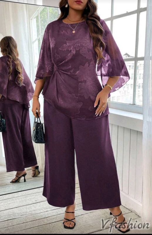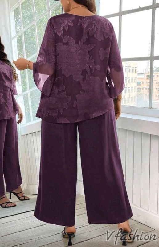 Много елегантен комплект от панталон и красива, вталена блуза на нежни цветя.