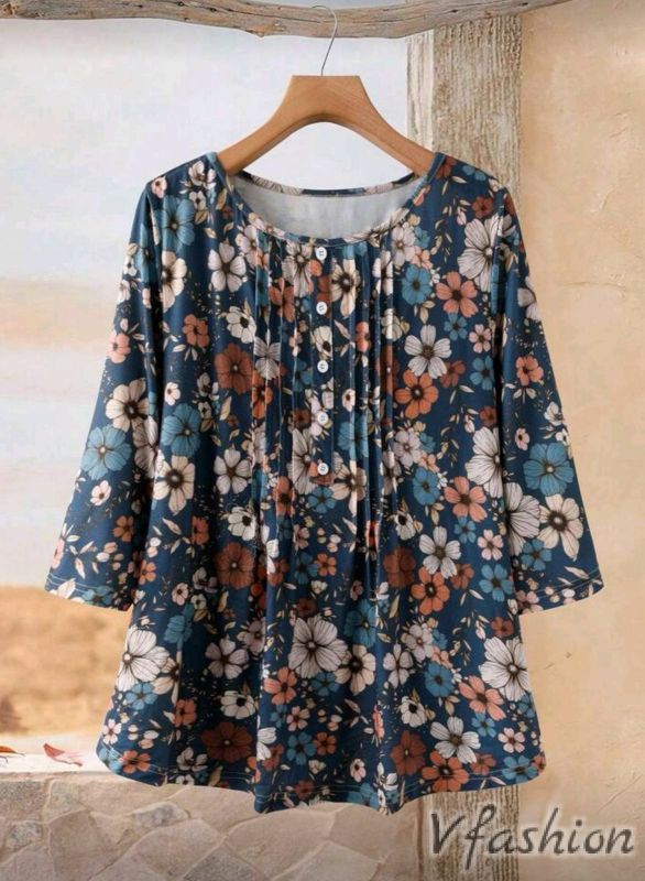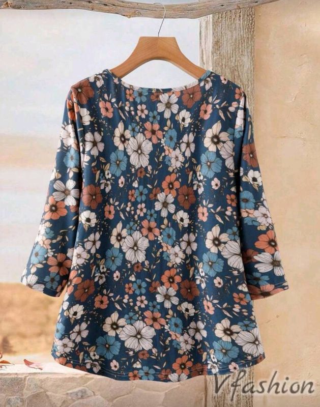Кокетна, ежедневна блуза с копчета и принт красиви цветя. Материята е еластична.