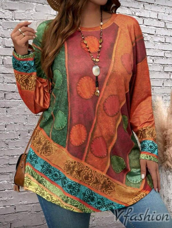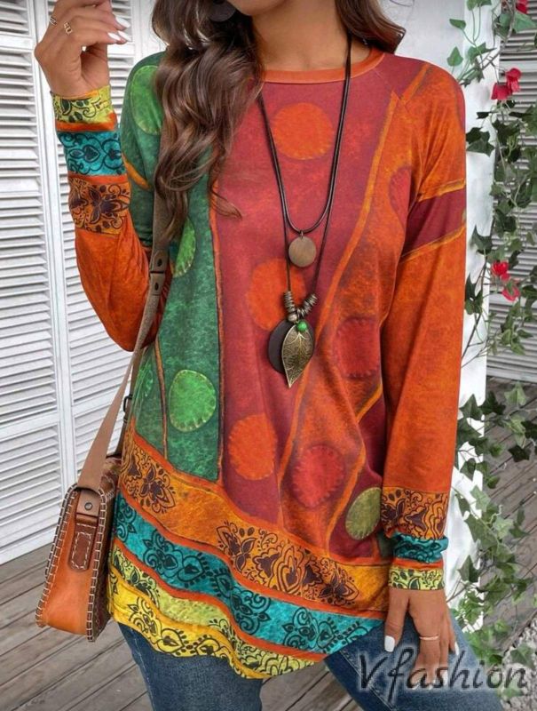 Ежедневна блуза/туника с цветен принт в етно стил. Материята е еластична.