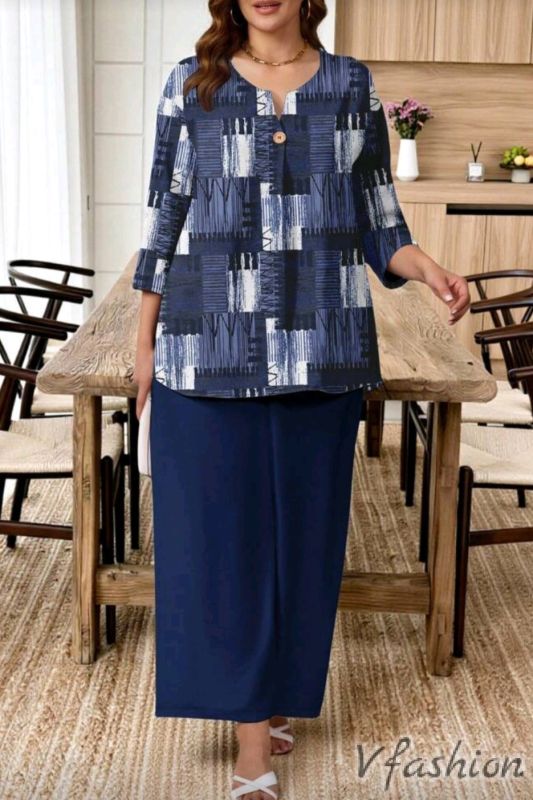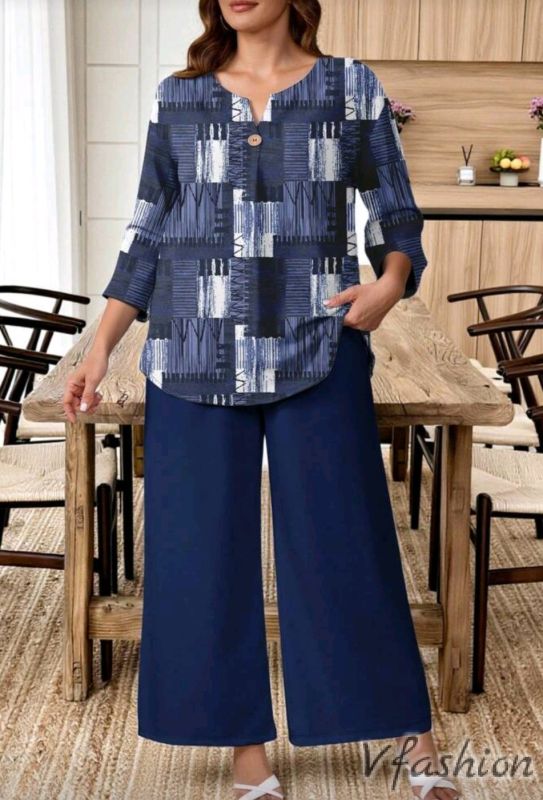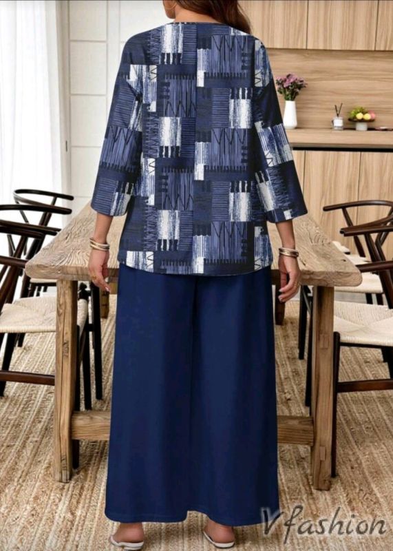 Ежедневен комплект от панталон и блуза с геометричен принт.