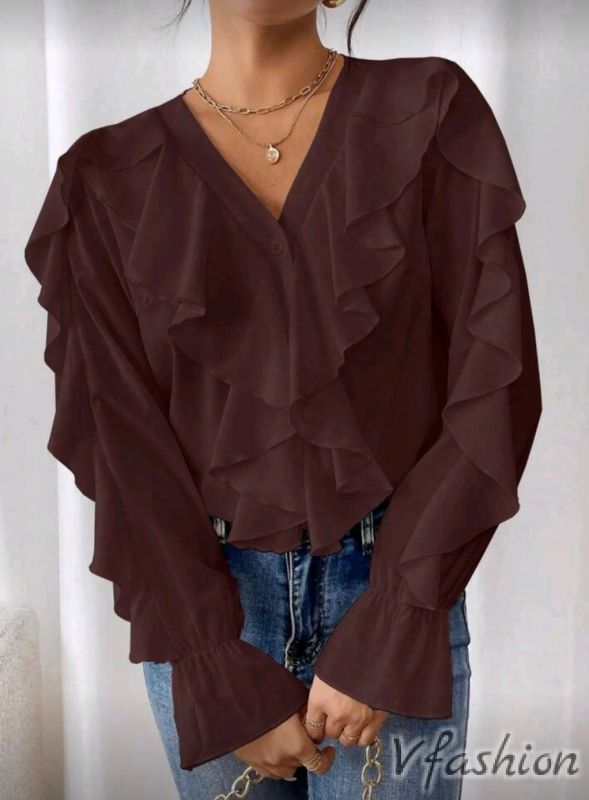 Риза с волани - кафява