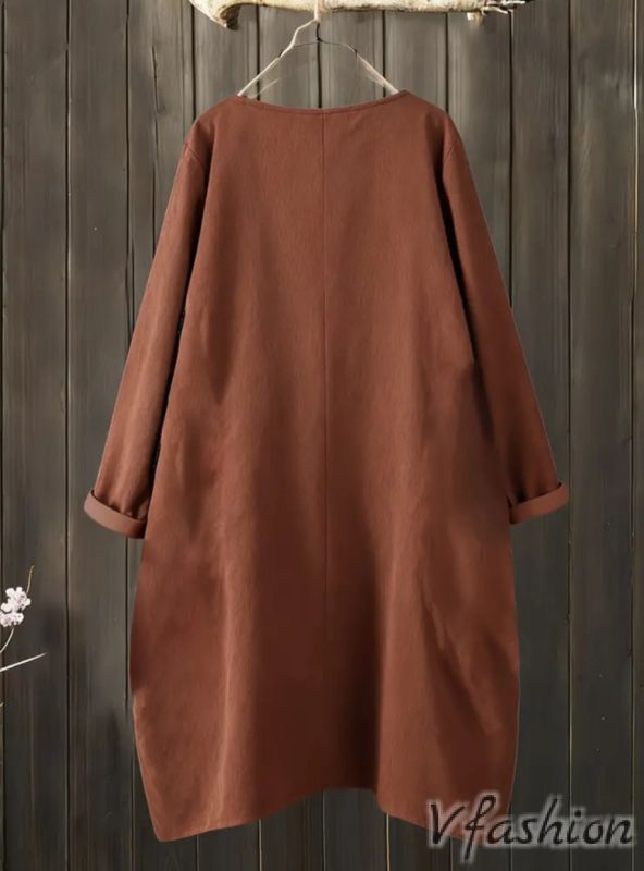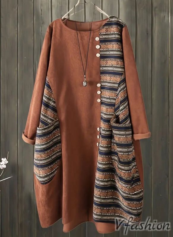 Спортно-елегантна рокля с изчистен силует с бохо принт. Роклята има удобни джобове.