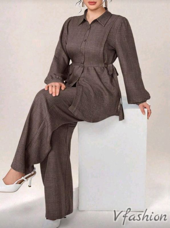 Красив, спортно-елегантен комплект от панталон и дълга риза с връзка.