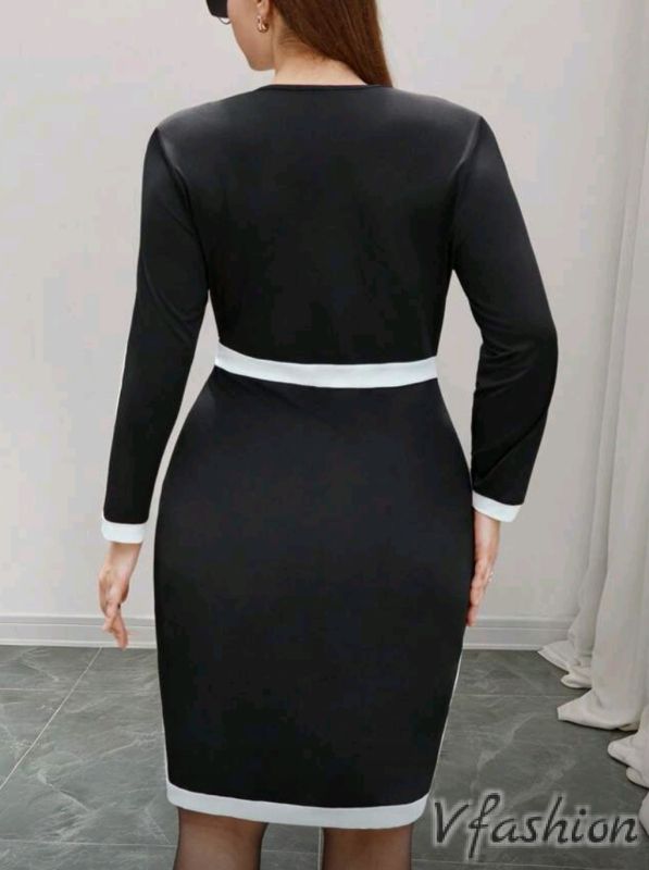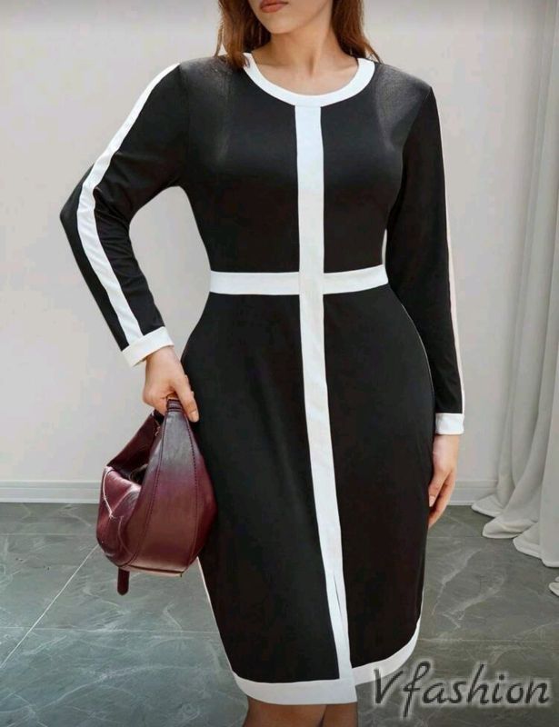 Спортно-елегантна рокля с изчистен силует в черно с бели акценти. Материята е еластична.