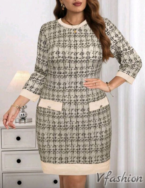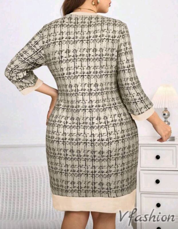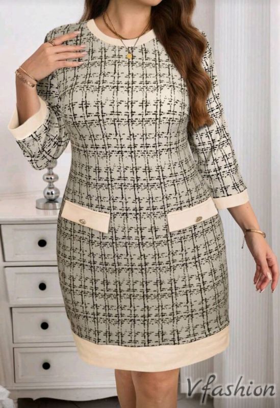Стилна рокля с изчистен силует и нежен принт. Материята е еластична.
