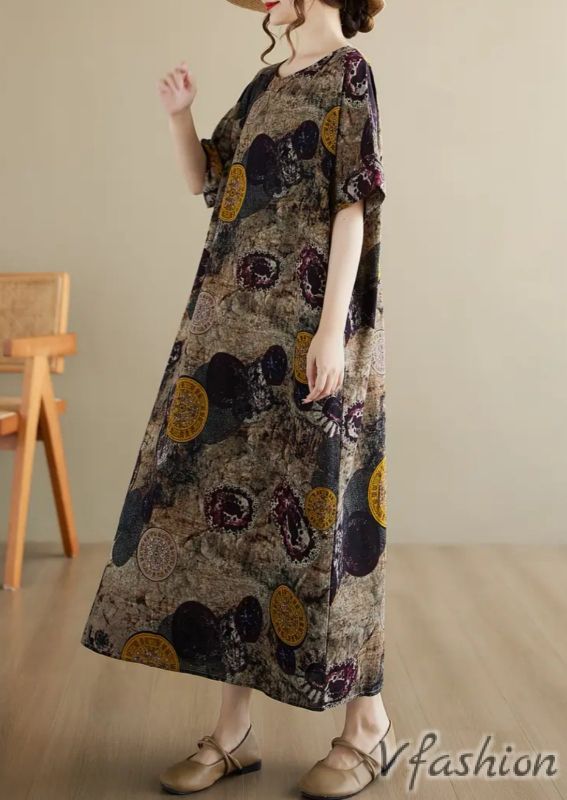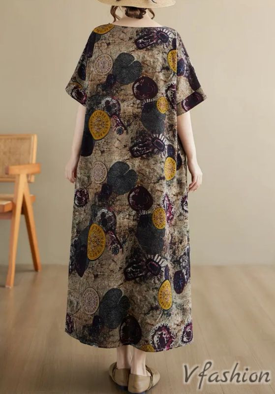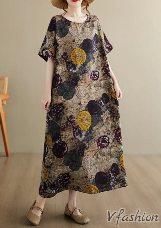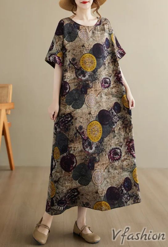 Ленена рокля с удобни странични джобови и принт в бохо стил.