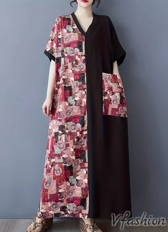 Дълга рокля с голям джоб и цветни мотиви в бохо стил.