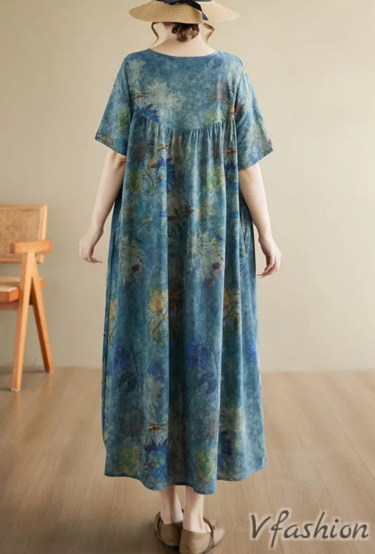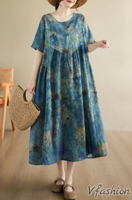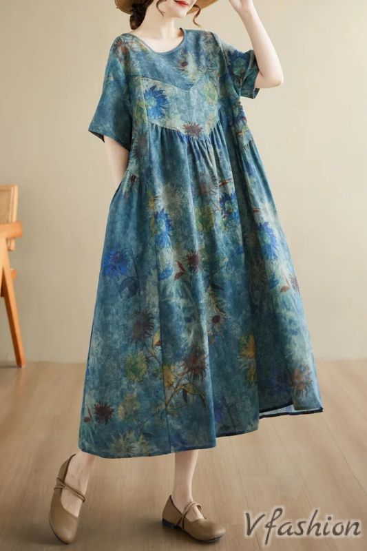 Ленена рокля с удобни странични джобови и много красив, арт принт.