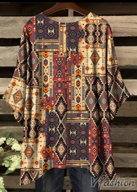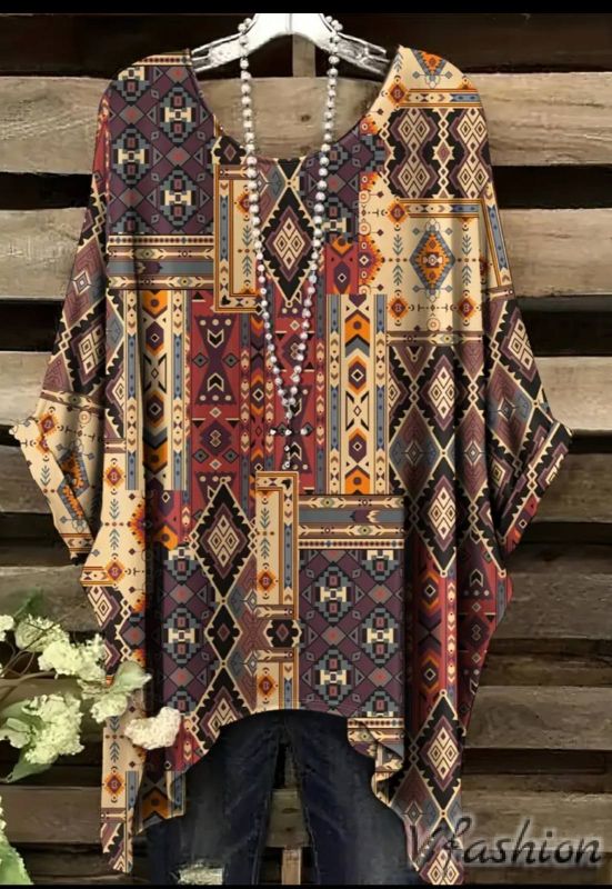 Еластична блуза/туника с актуален принт в бохо стил.