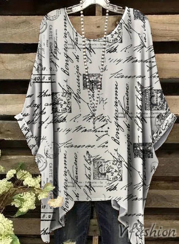 Много удобна и актуална блуза с принт черни надписи на бял фон.